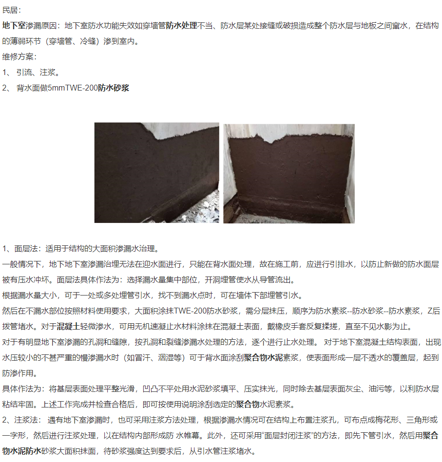 地下室滲漏防水解決方案
