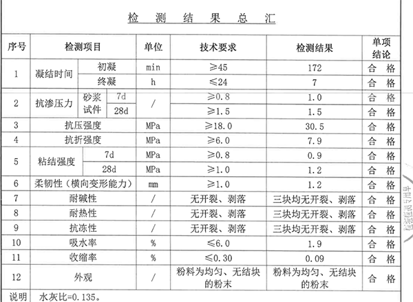 (2)TWE984防水砂漿同時防腐 氯離子滲透性測試:按照DL/T5126-2001中6.8的規(guī)定進行,其中制備砂漿試件尺寸70.7mmX70.7mm,試件在標準試驗條件下養(yǎng)護,在氯化鈉溶液中浸泡天數為7d。 |