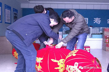 帶著手鉗、改錐、扛著移動梯子,拿著燈籠,在大家的密切配合下,將帶著祝福的燈籠掛在辦公樓、廠門衛(wèi)室兩旁。 春節(jié)福利帶回家