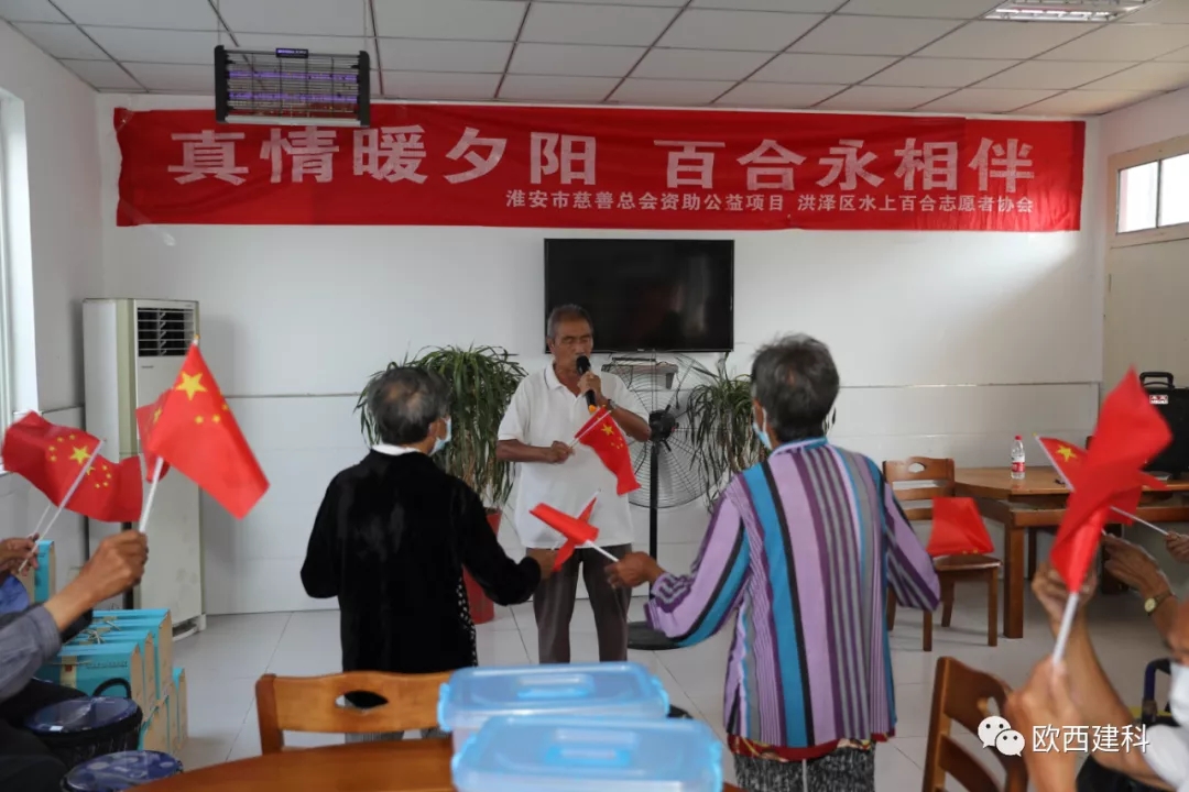 金風送爽,丹桂飄香,國慶將至,普天同慶。近日,江蘇歐西建材科技發(fā)展有限公司攜手淮安市洪澤區(qū)水上百合志愿者協會、區(qū)發(fā)改委黨總支、區(qū)朱壩街道社區(qū)衛(wèi)生服務中心及愛心志愿者們前往朱壩街道敬老院看望慰問生活在這里的老人,開展了“敬愛老人 奉獻愛心”慰問活動。 歐西及發(fā)改委志愿者們?yōu)槔先藗兯腿チ宋繂柶泛头酪呶镔Y,并送上美好祝福。在親切的祝福問候聲中,讓每一位老人感受到了家庭般的溫暖,臉上綻開了幸福的笑容。現場醫(yī)護人員不僅為老人們一個個進行體檢,還給他們普及慢性病防治知識。