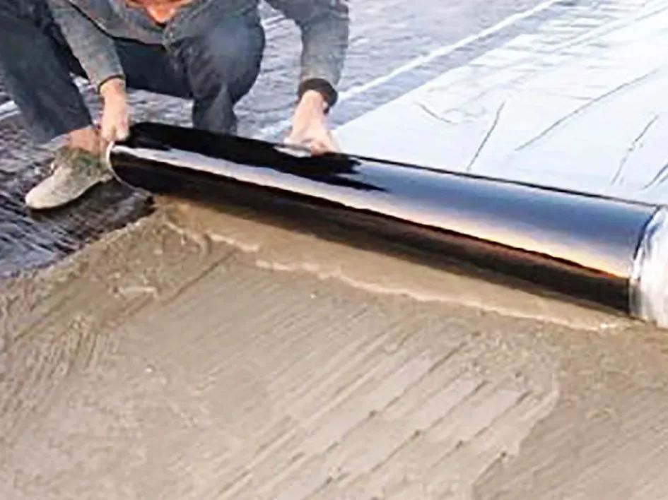 2、卷材采用水泥砂漿與基層粘結(jié):當(dāng)采用水泥膠漿時(shí),膠粉摻加量為水泥重量的3%—5%;當(dāng)采用水泥砂漿時(shí),配比為水泥:中砂=1:2,實(shí)際加水量需要結(jié)合基層潮濕程度現(xiàn)場(chǎng)調(diào)整,水泥建議使用強(qiáng)度等級(jí)42.5的普通硅酸鹽水泥。水泥砂漿攪拌均勻后,刮涂于基層。
