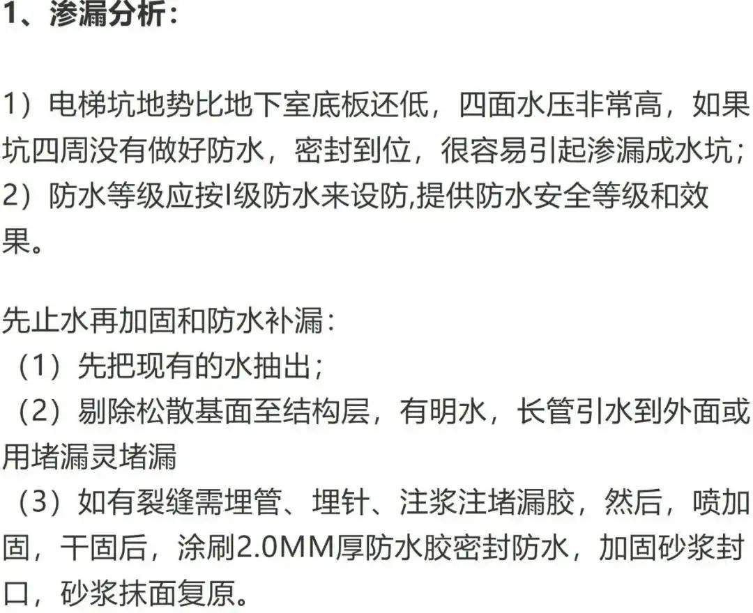 電梯坑滲漏水,如何防水補漏?