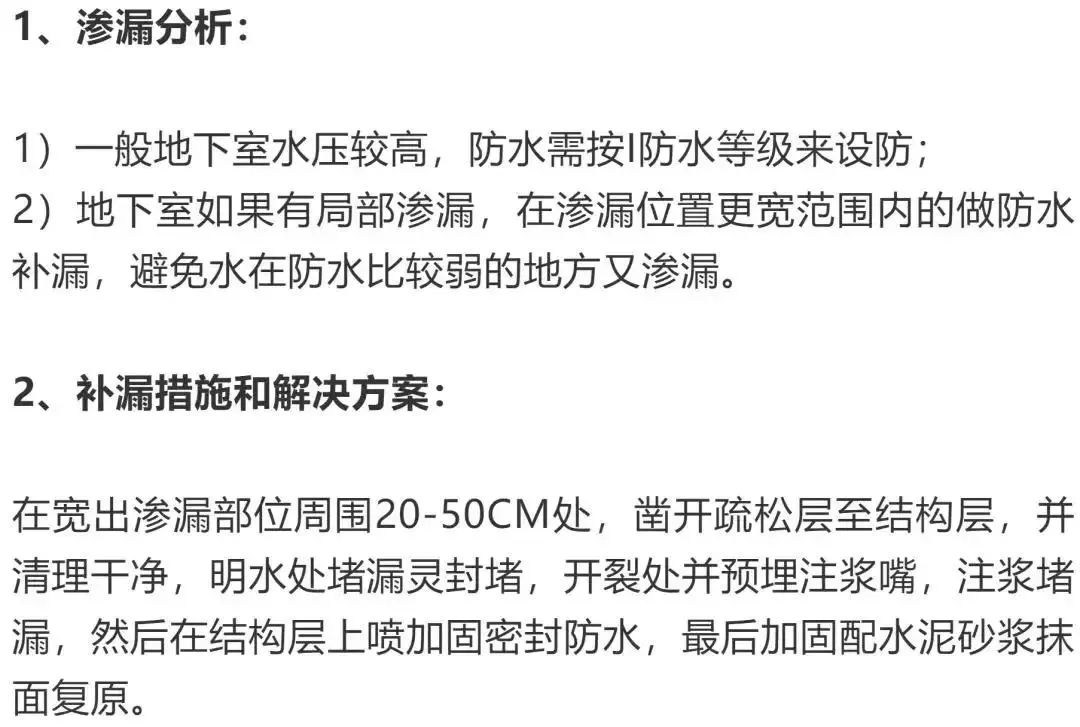 2、補漏措施和解決方案: